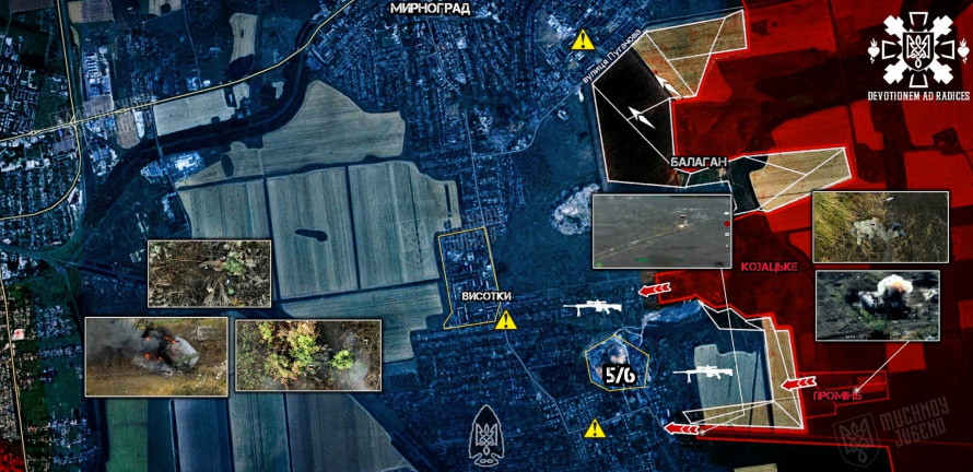 На Мирноградському напрямку, згідно з повідомленням, противник націлений на південно-східну частину Мирнограду. Його тактика передбачає поступове просування через приватний сектор з метою виходу на багатоповерхову забудову. Наявні дані свідчать, що населений пункт Промінь вже знаходиться під контролем супротивника, а візуальні кадри й втрати техніки підтверджують їхнє закріплення на підступах. Також противник надає значення контролю над териконом шахти 5/6, адже ця висота дозволяє отримати оглядові позиції й посилити тиск на лінії оборони в південно-східній частині міста.