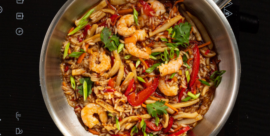 Рис з морепродуктами — це швидка, але дуже ефектна страва: ароматний рис, соковиті креветки й ніжні кальмари в легкому соєвому соусі. Готується в одній сковороді, без складних технік — ідеально для буденного вечора чи романтичної вечері!