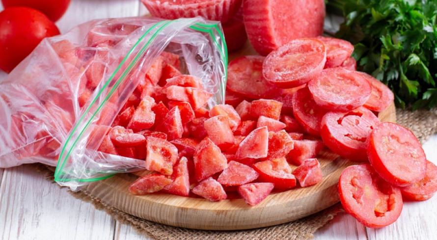 Заморожування помідорів - зручний метод заготівлі. Наріжте кружальцями, сформуйте «рулет» і використовуйте взимку для супів чи соусів.