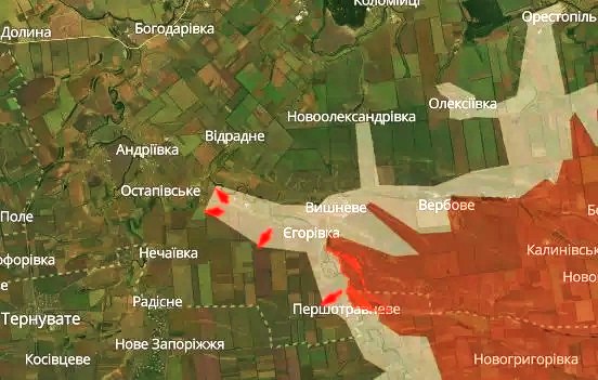 На жаль, на південному фасі зазначеного напрямку російські загарбники відчутно просунулися вперед в районі частково окупованого села Першотравневе Покровської селищної громади Синельниківського району Дніпропетровської області.