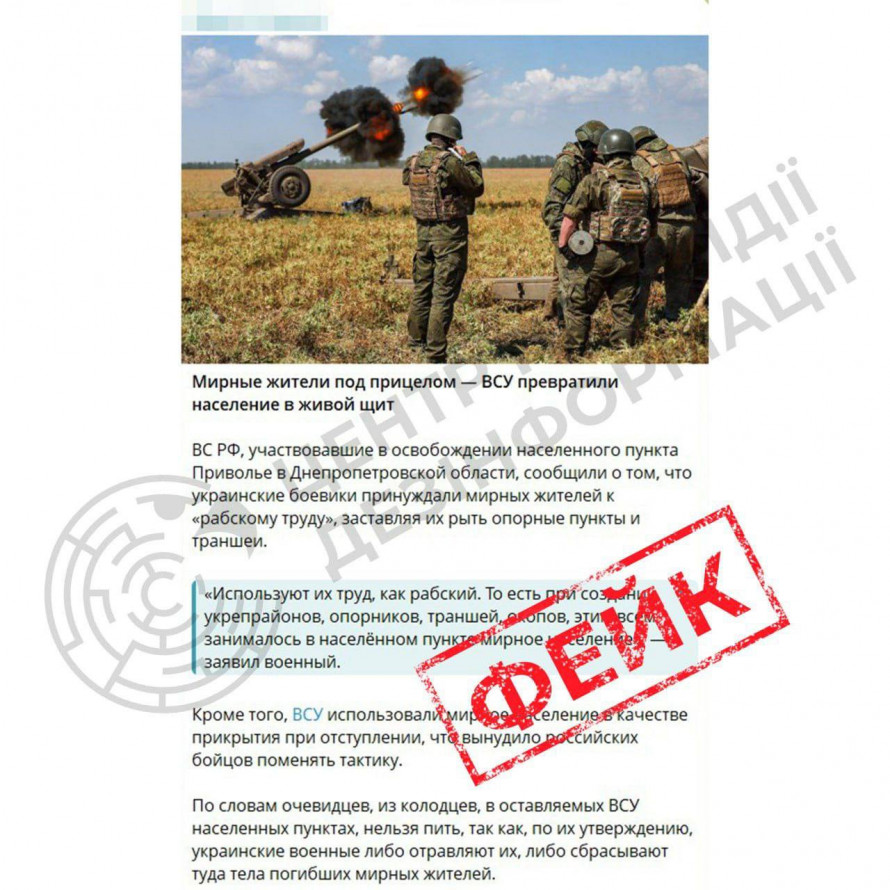 За версією російських медіа, українські військові нібито змушують місцевих жителів копати траншеї, використовують мирних громадян як «живий щит» та навіть отруюють колодязі. Проте жодних підтверджень цих звинувачень немає. Центр протидії дезінформації підкреслює, що такі повідомлення є типовими елементами інформаційних операцій росії, спрямованих на дискредитацію Збройних сил України.