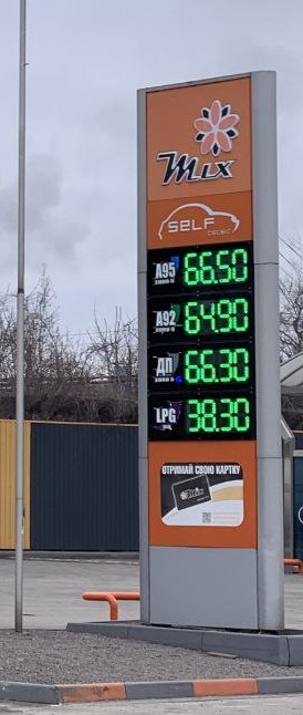 Автомобільний газ (LPG): ціна на заправках міста тримається в діапазоні 36,99–41,99 грн/л. На станціях мережі Mlx вартість становить 38,30 грн/л.