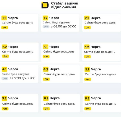 Офіційний сайт ДТЕК «Дніпровські електромережі» (розділ «Відсутня електроенергія»).