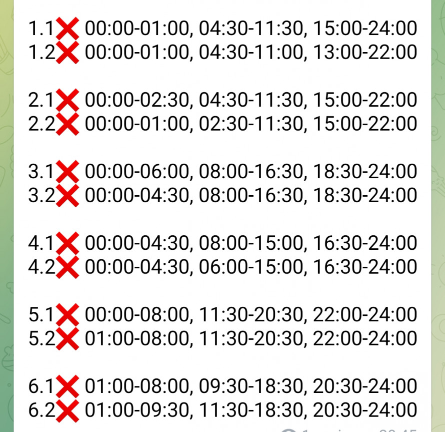 Просимо врахувати, що графіки стабілізаційних відключень актуальні лише доти, доки ситуація в мережі залишається контрольованою. У разі виникнення гострого дефіциту або аварійних ситуацій можуть бути введені екстрені відключення. У такому разі графіки, наведені нижче, тимчасово стають недійсними, а енергетики роблять усе можливе для якнайшвидшої стабілізації системи.