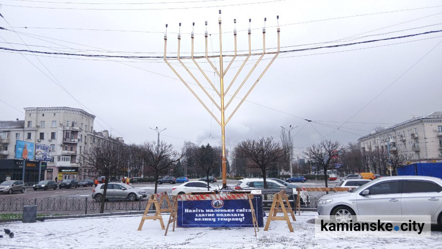 У Кам’янському на площі Героїв встановили спеціальний свічник - Ханукію - на честь єврейського свята Хануки (Свята Вогнів)