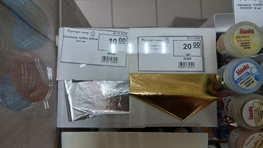Все необхідне для такого декору вже з’явилося у продажу. Наприклад, спеціалізована кондитерська лавка "Територія смаку", що розташована за адресою: проспект Тараса Шевченка, 16, пропонує поталь за цілком доступними цінами: