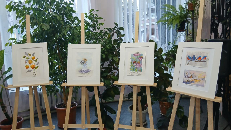 Серед експонатів представлені як авторські роботи мисткинь, так і картини, намальовані у художній майстерні під наставництвом художниці Марії Кирпичникової.