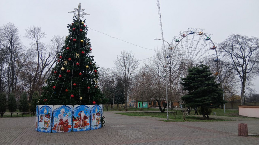 У центрі парку вже встановили святкову зелену ялинку. Вона виготовлена зі штучного матеріалу та прикрашена яскравими кульками й гірляндами. Кожен охочий може зробити чудові святкові фотографії біля неї. А коли у темний час доби запалюються вогні всього парку, навколишнє середовище набуває справжньої магічної атмосфери.