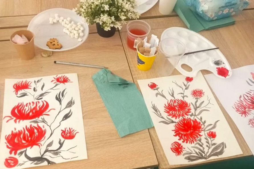 Тут пройшов майстер-клас із живопису в традиційній японській техніці сумі-е - мистецтві, де кілька впевнених мазків здатні передати глибину почуттів і красу світу.