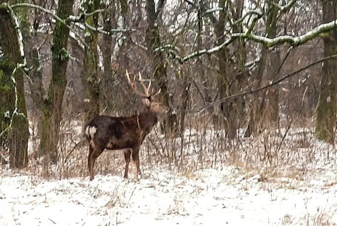 Плямистий олень, що колись жив лише в Японії та Китаї, нині впевнено почувається серед засніжених українських лісів