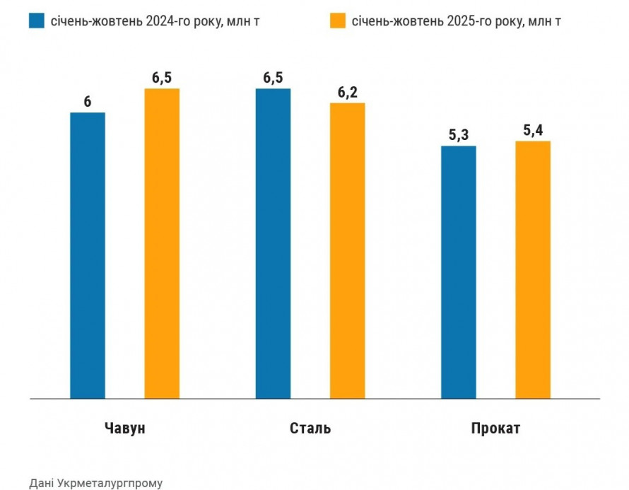 За 10 місяців 2025 року українська металургія виробила 6,2 млн т сталі. Наступного року, за прогнозами «ГМК Центру», Україна може виплавити 6,7‑7 млн т сталі. Близько 55 % української сталевої продукції експортується на тлі того, що внутрішній ринок не має потенціалу до зростання під час війни. Надмірне виробництво сталі в Китаї призвело до зростання експорту з цієї країни, що спричинило падіння цін на глобальному ринку та звуження можливої географії експорту з України.