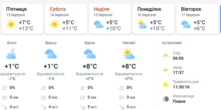 Окрему увагу варто звернути на астрономічні умови цих вихідних. 14 та 15 березня припадають на фазу повні. Це період, коли, за даними фахівців, може спостерігатися підвищена чутливість у метеозалежних людей, хоча прямих наукових доказів впливу Місяця на фізичний стан атмосфери небагато.