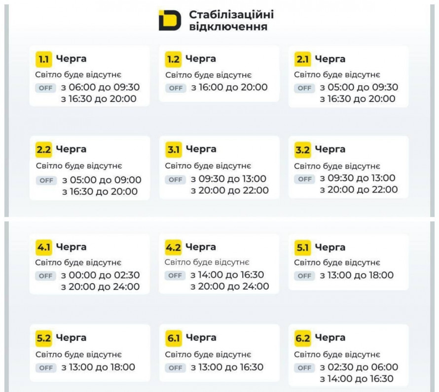 - слідкувати за оновленнями графіків на офіційних сторінках своїх обленерго.