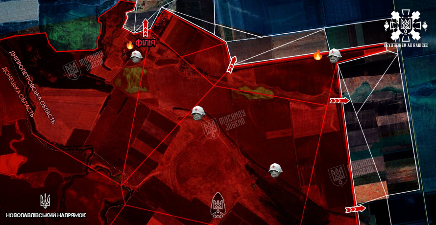 На Новопавлівському напрямку противник поступово розширює зону контролю, особливо на схід і південний схід від населеного пункту Філія. На карті формується смуга так званих «сірих зон» — ділянок, де лінія фронту змінюється майже щогодини. Саме тут відбуваються найактивніші бойові зіткнення.