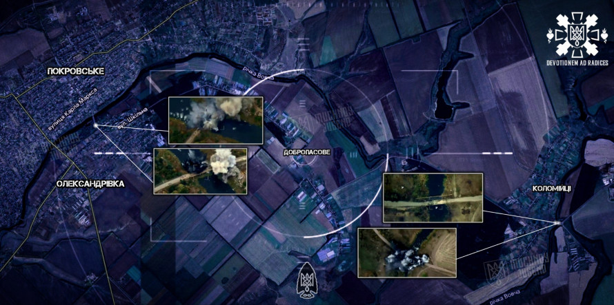 Крім того, зафіксовано удари в районі населеного пункту Коломійці. Там пошкоджено міст, який мав стратегічне значення для сполучення між Тихим і Вовчим. У результаті транспортна мережа цього сектору зазнала серйозних втрат, що ускладнює логістику українських сил і обмежує можливість швидкого перекидання техніки та боєприпасів.