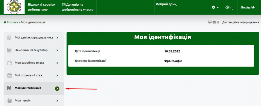 Перевірити, чи зарахована процедура, можна у своєму кабінеті ПФУ в розділі «Моя ідентифікація».