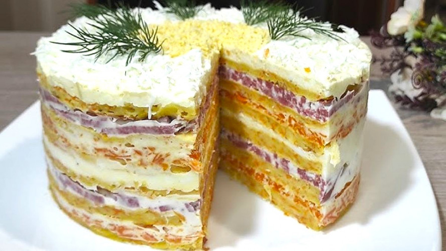Яскравий, ніжний і неймовірно апетитний у розрізі - цей закусочний торт збере за столом рідних та знайомих