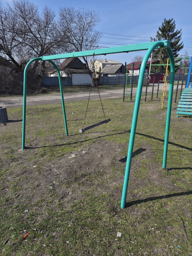 - Аварійні гойдалки: Замість зручних сидінь на ланцюгах залишилися лише металеві шматки, які неможливо використовувати за призначенням.