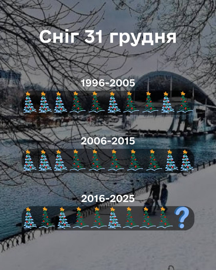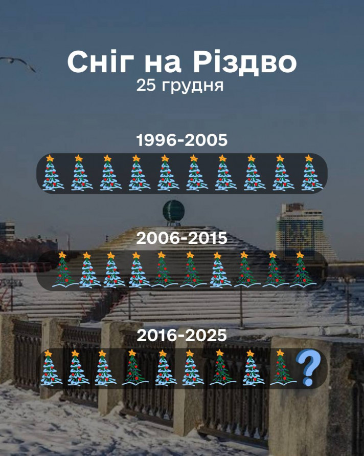 Найбільш сніжним періодом було перше десятиліття спостережень (1996–2005), коли сніг на Різдво був гарантованим. Починаючи з 2006 року, ймовірність побачити сніг на свята на Дніпропетровщині становить приблизно 40–50%, що підтверджує глобальні зміни клімату та теплішання зими в нашому регіоні.